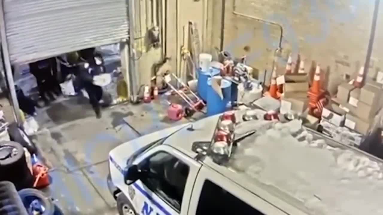 Brooklyn. The female officer was heading toward a van in the station garage when the metal gate slammed down on her legs.