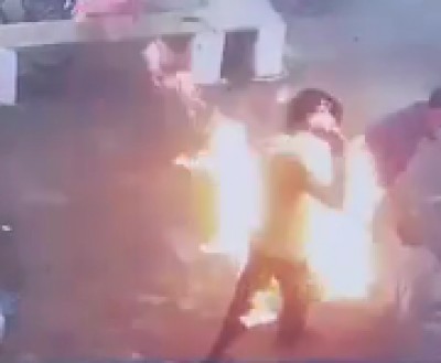 Farmer Sheetal Rajak set himself on fire by sprinkling kerosene in the Banda police station premises of Sagar district on Tuesday morning. Fortunately, he was followed by his wife and family, he and the police personnel doused the fire with blankets and water. He was taken to the hospital for treatment by ambulance. The farmer has suffered about 50 percent burns. CCTV footage of the entire incident has also surfaced.