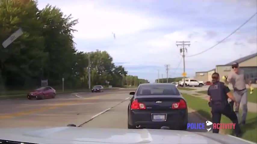 A male bystander has to help out the female cop because the female cop is useless