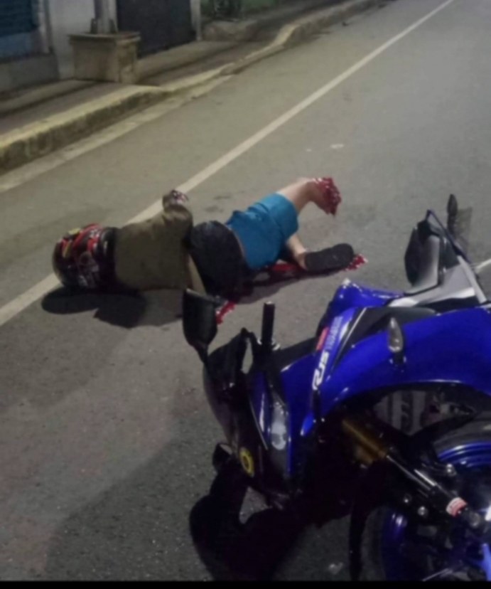 Holy cow, the bike must have been too heavy that it broke his leg.