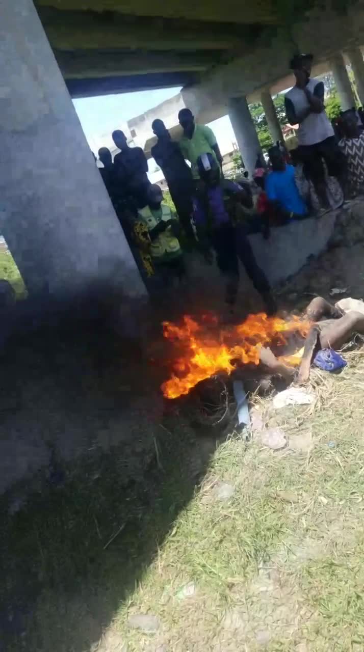 A mad woman caught with three AK-47 rifles stashed in a sack bag has been set ablaze by an angry mob at Abule-Ado, Trade fair area of Badagry, Lagos State.