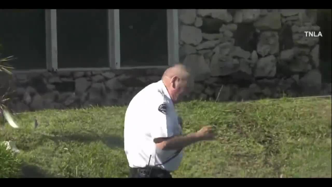"Video shot by a news helicopter captured the heart-pounding moment a civilian police volunteer collapsed to the ground after being repeatedly stung by a swarm of angry bees terrorizing a Los Angeles neighborhood. Fox 11’s SkyFox was over the Encino neighborhood late Monday afternoon when it captured the dramatic bee attack. A uniformed volunteer with the Los Angeles Police Department was scrambling to climb into his marked car around 4 p.m. when the bees swarmed him."