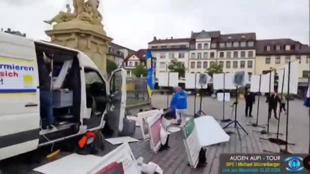 The horror ordeal unfolded at a gathering in Mannheim for the BPE political group, which is known to hold anti-Islam views, and was live-streamed to thousands on YouTube on Friday morning.
