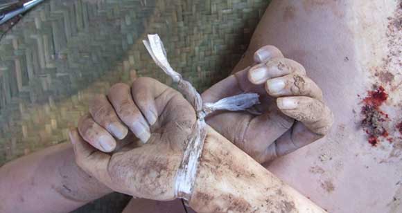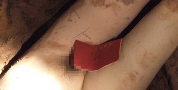 This is a shocking photo of the corpse of a prostitute taken in China. The body showed signs of rape: a pair of pants believed to be hers had been stuffed into her mouth, and her hands were tied when she was abandoned... ('・ω・')