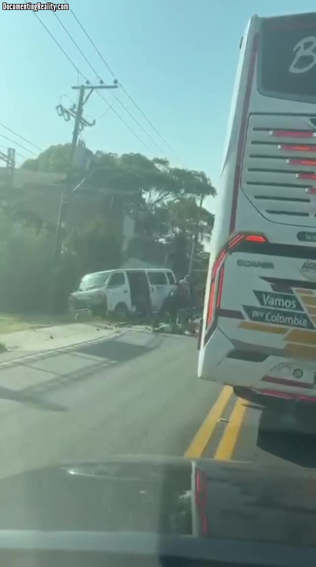 Colombia. A woman, 38, died after a severe collision between her motorcycle and a van after she and her son were overtaking a dump truck. Her 20-year-old son remains in ICU.