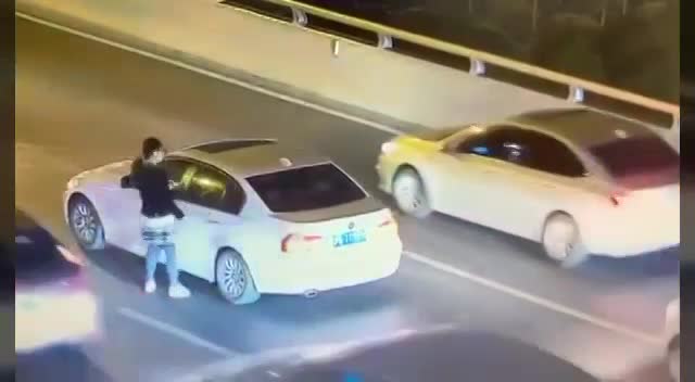 Young Chinese man commits suicide by jumping off a bridge in front of his girlfriend after arguing with her.