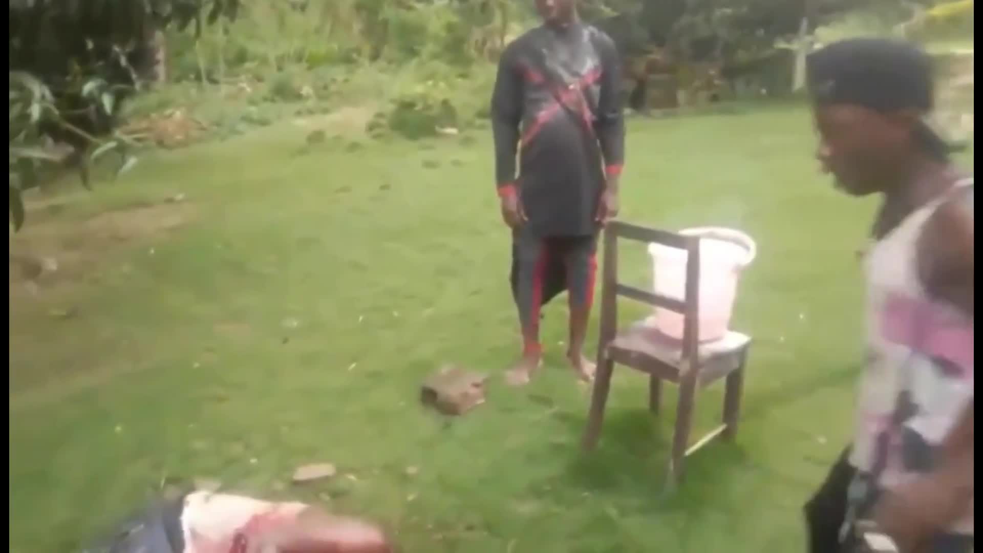 Disgusting nigger, who thinks he's a ninja, cuts off another nigger's hand.