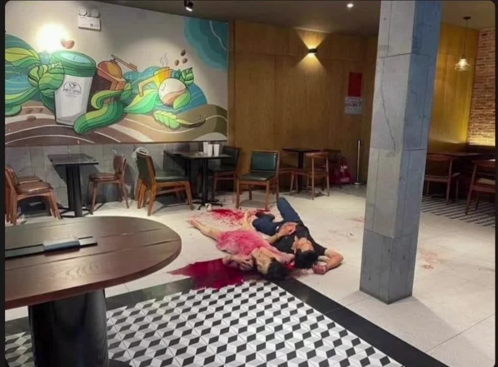 Crazy Asian man stabs his girlfriend and lies down next to her corpse.