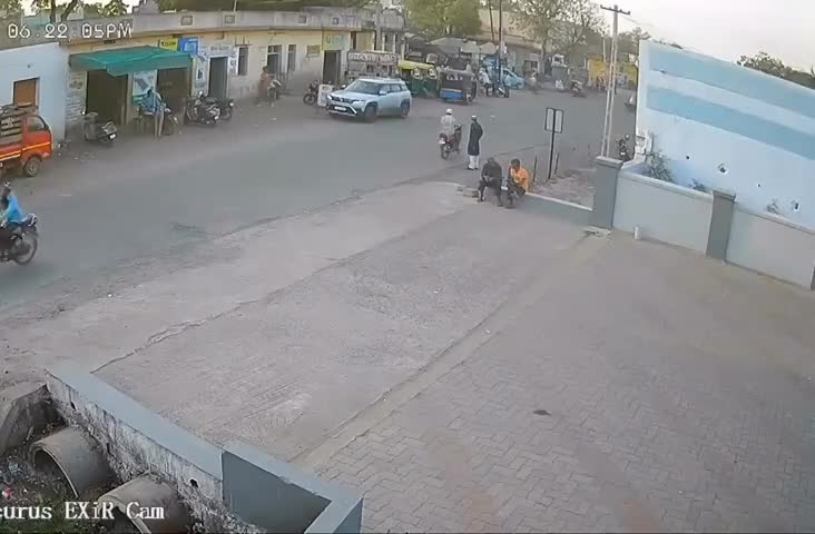 India. Driver dodged a motorcyclist, hit a pedestrian instead, then took off..