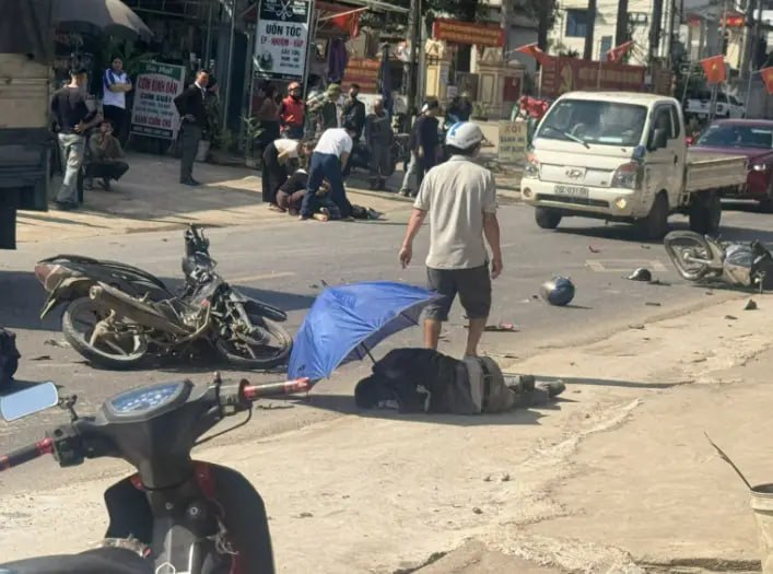 Hồ Chí Minh, Vietnam, December 24. 2 men on a bike crashed into another, one of them was hit by another bike afterward.