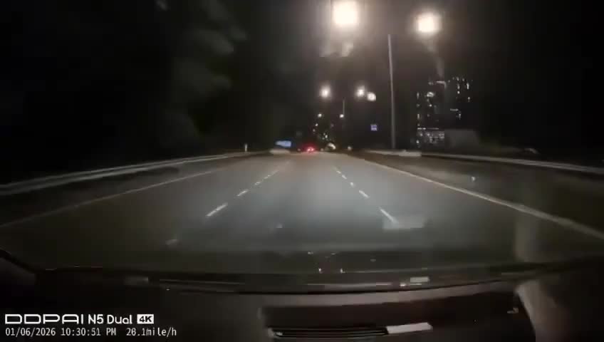 Malaysia, January 6 — A motorcyclist veered into oncoming traffic, collided head-on with a car, and… then just chills on the hood ..