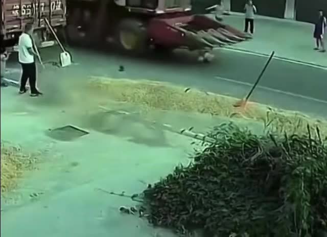 Child Warning! Dragged by a Tractor While Crossing the Road