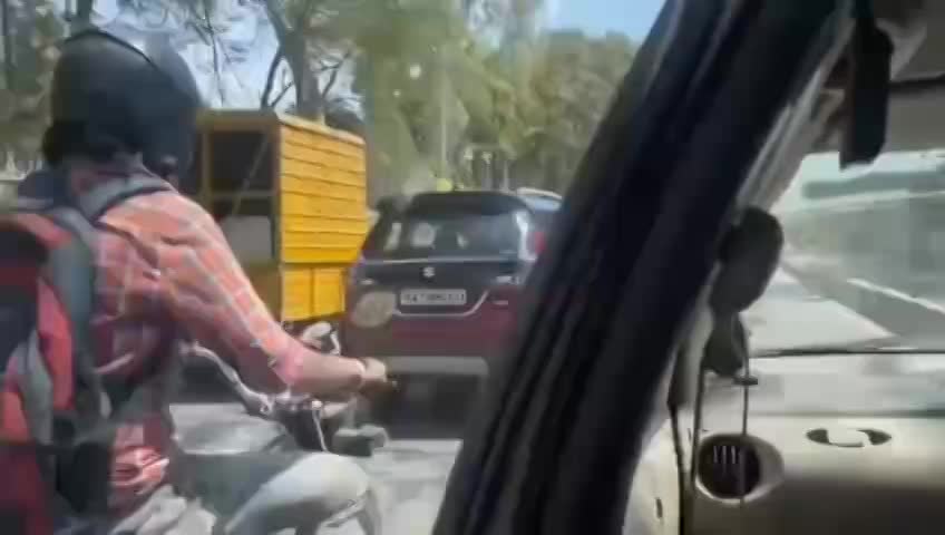India. Road Rage. After a traffic accident, the SUV driver took off abruptly, and the man clung to the hood for almost a mile.