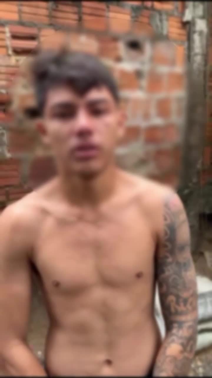A Brazilian man cries with a cloth over his face while being shot in the hand.