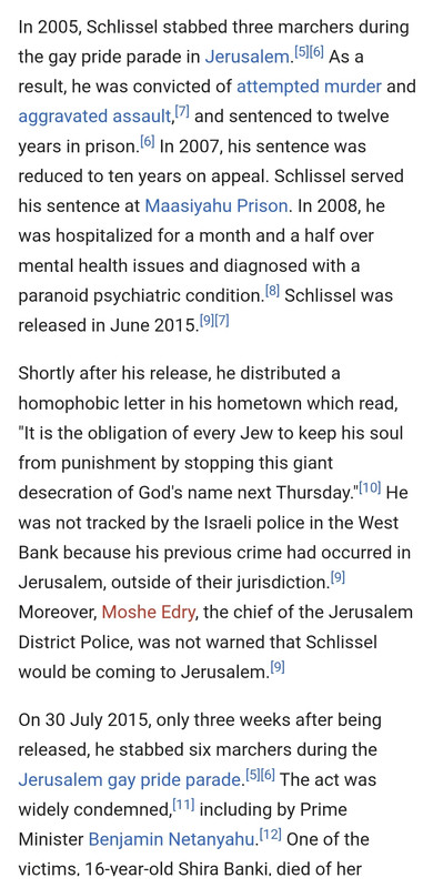 Also, something like this. It's one thing to stab an entire gay pride parade, and quite another to get out of prison to do it a second time.
