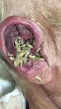 DISGUSTING! ROTTEN EAR FULL OF WORMS