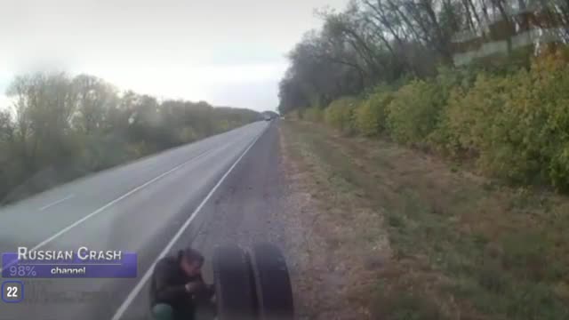 TIRE EXPLOSION IN FRONT OF MAN NEARLY FUCKED UP