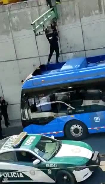 Upon arrival, they noticed that the young woman, apparently in a vulnerable situation, was suspended from the metal structure, and they quickly stopped a unit of the Electric Transportation Service, Trolleybus, to climb the awning and prevent the young woman from losing her life while they made the cuts to the circulation in the avenue.