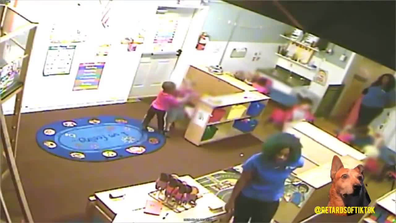 NIGGER kid stole toy from White Child. White Child tried to take back. NIGGER daycare worker slam White Child on floor twice. Gives toy to NIGGER Child.