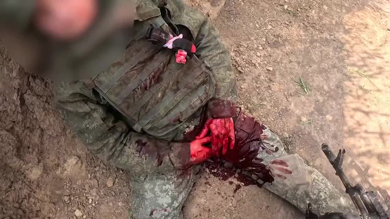 A Russian is bleeding out because his tourniquet is not accessible... he was scared it could be stolen by his comrades