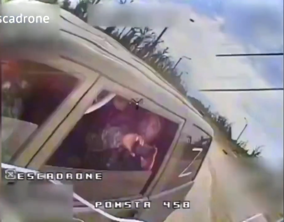 Ukrainian FPV loitering munition strike targeting a Russian SUV on the E40 north of Bakhmut.