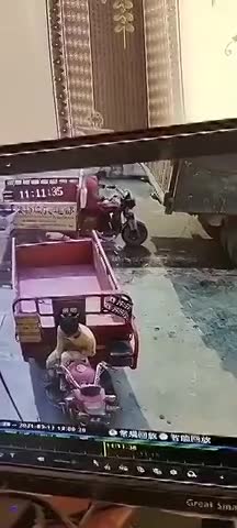 Motorcyclist Head Stuck Behind The Stopping Truck