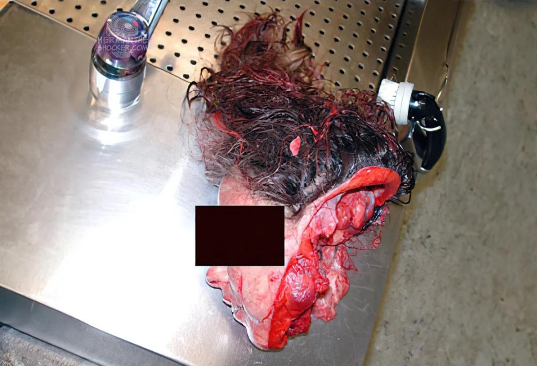 Norway. In a sharp left curve, the car in high speed had hit the guardrail on the right side of the road. Several road sign poles with warning signs of a sharp curve were on the other side The head was found close to one of the poles. The motor of the car was still running.