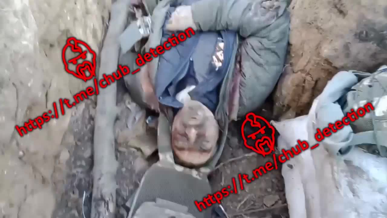 Russian soldier records recently liquidated Ukrainian militants in a trench