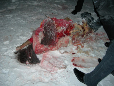 Polar Bear Devouring A Man's Body