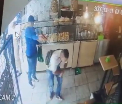 In a security camera recording, the victim is seen talking on his cell phone when suddenly, behind him, the attacker arrived.