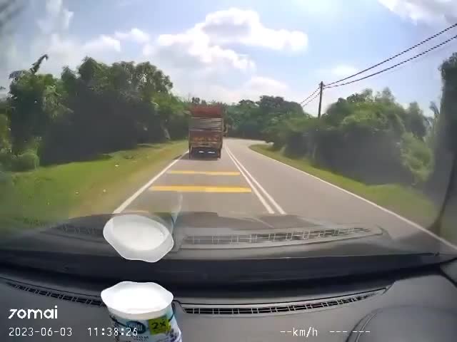 "Another motorcycle that was behind managed to avoid but hit a Proton X70 that was behind the lorry."