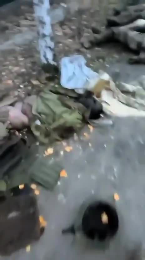 Again war crimes by Russian subhumans. The killed are lined up perfectly, have no clothes or equipment, are in an advanced stage of decomposition and all have holes in their skulls. They wanted to surrender, but the vanilla Asians executed them.