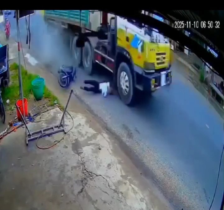 Motorcyclist Fell In Front Of Truck And Got Dragged