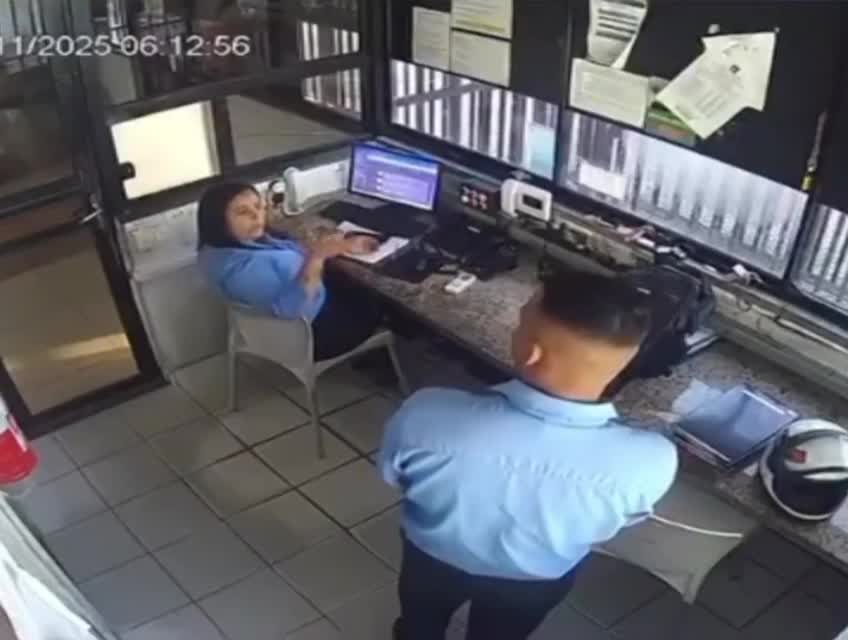 Angry Security Guard Beat The shit Out Of His Female Coworker
