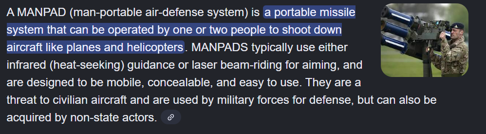 a manpad is a shoulder fired surface to air missile you stupid fuck