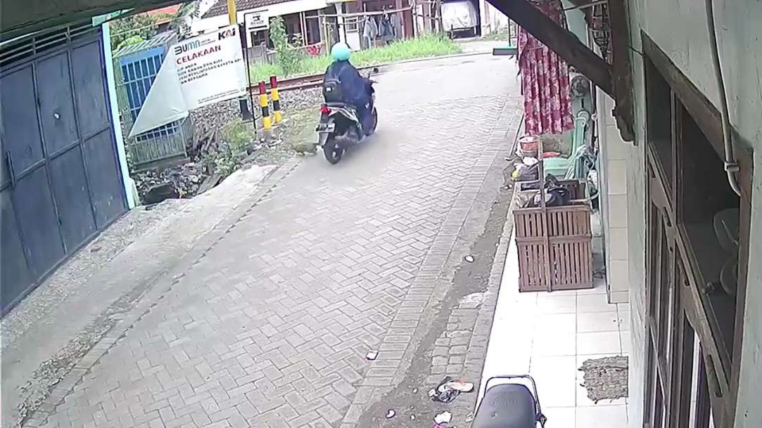 A motorcyclist Disappeared On A Railway Track In Indonesia