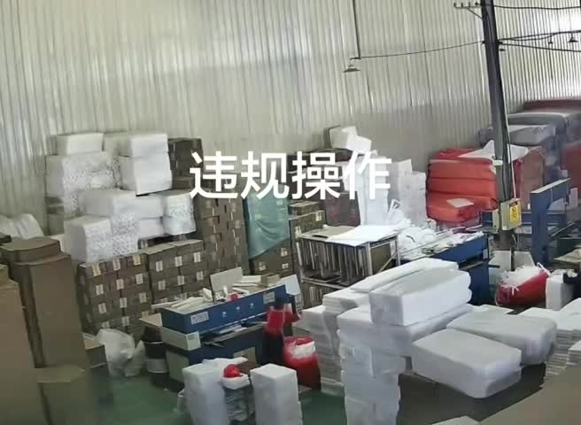 China. Woman working at factory fucks up her hand after improperly operating die cutting machine.