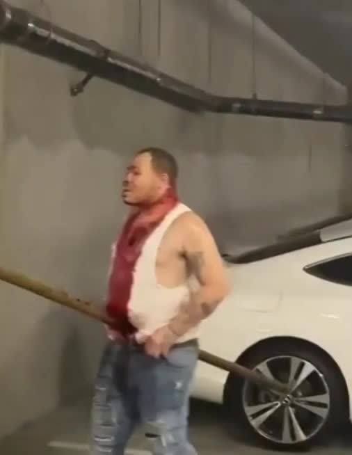 The video description didn't tell us what happened, but I'd like to venture a guess the moron just got up from a car accident and went on about his day, to sleep it off.