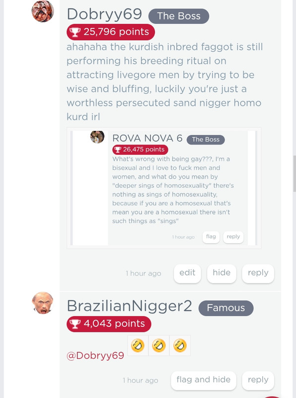 the butthurt inbred kurd homo is flagging even the reactions XD, that's how you know he ain't about the stuff he be preaching and is just a butthurt performative little dune coon cunt