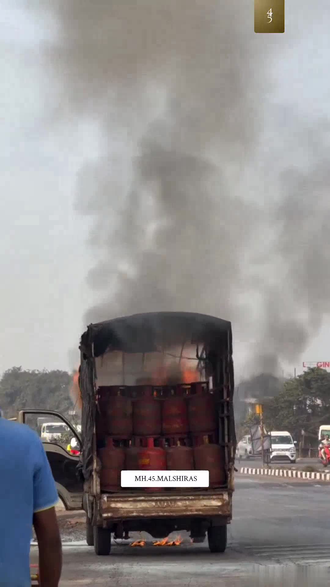 A massive fire broke out in a vehicle carrying cylinders at Washi Naka, Pen.