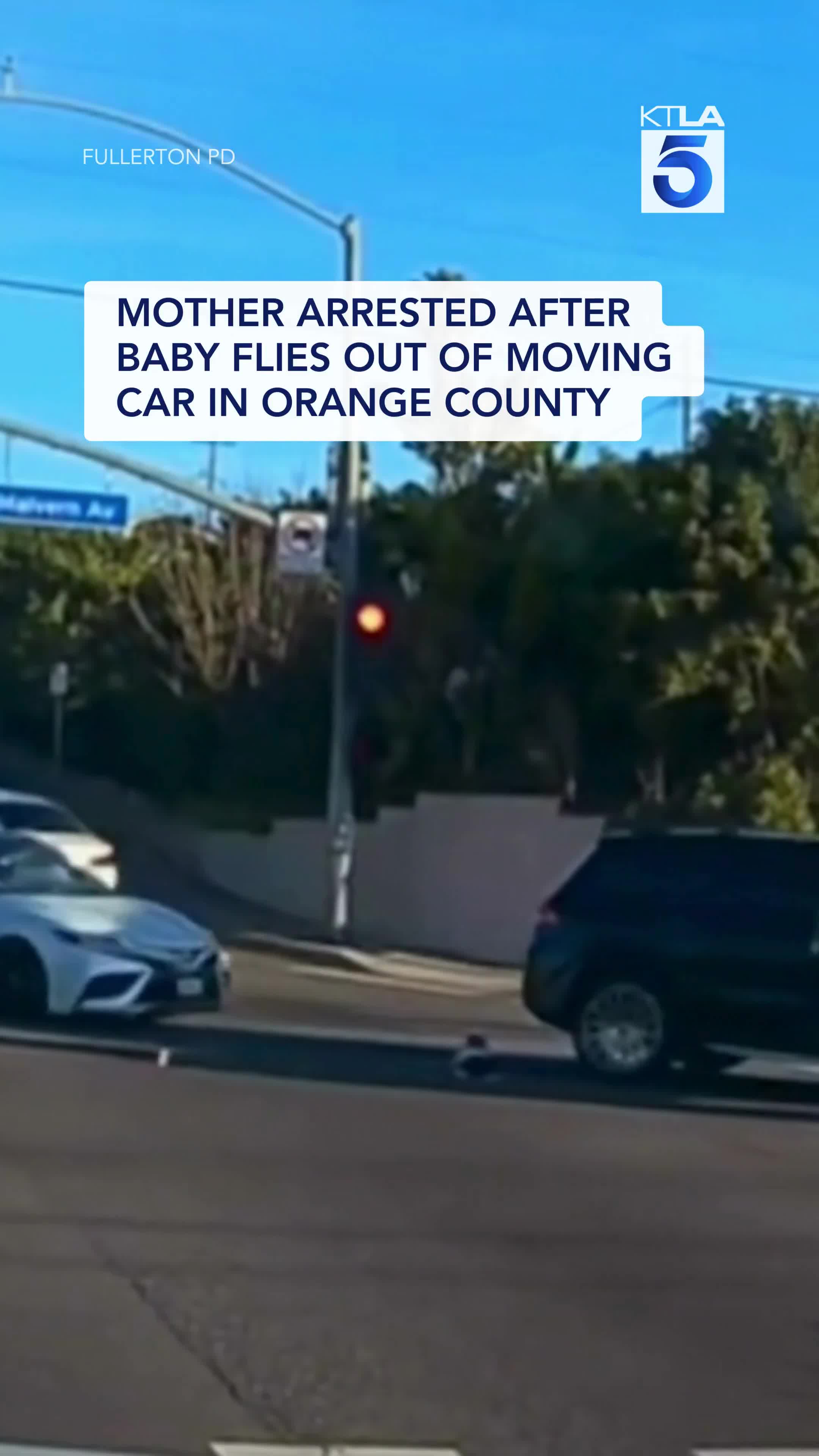 California. That could have ended badly. A mother has been arrested after a 19-month-old child was seen flying out of a car while it was making a turn at an intersection in Orange County.