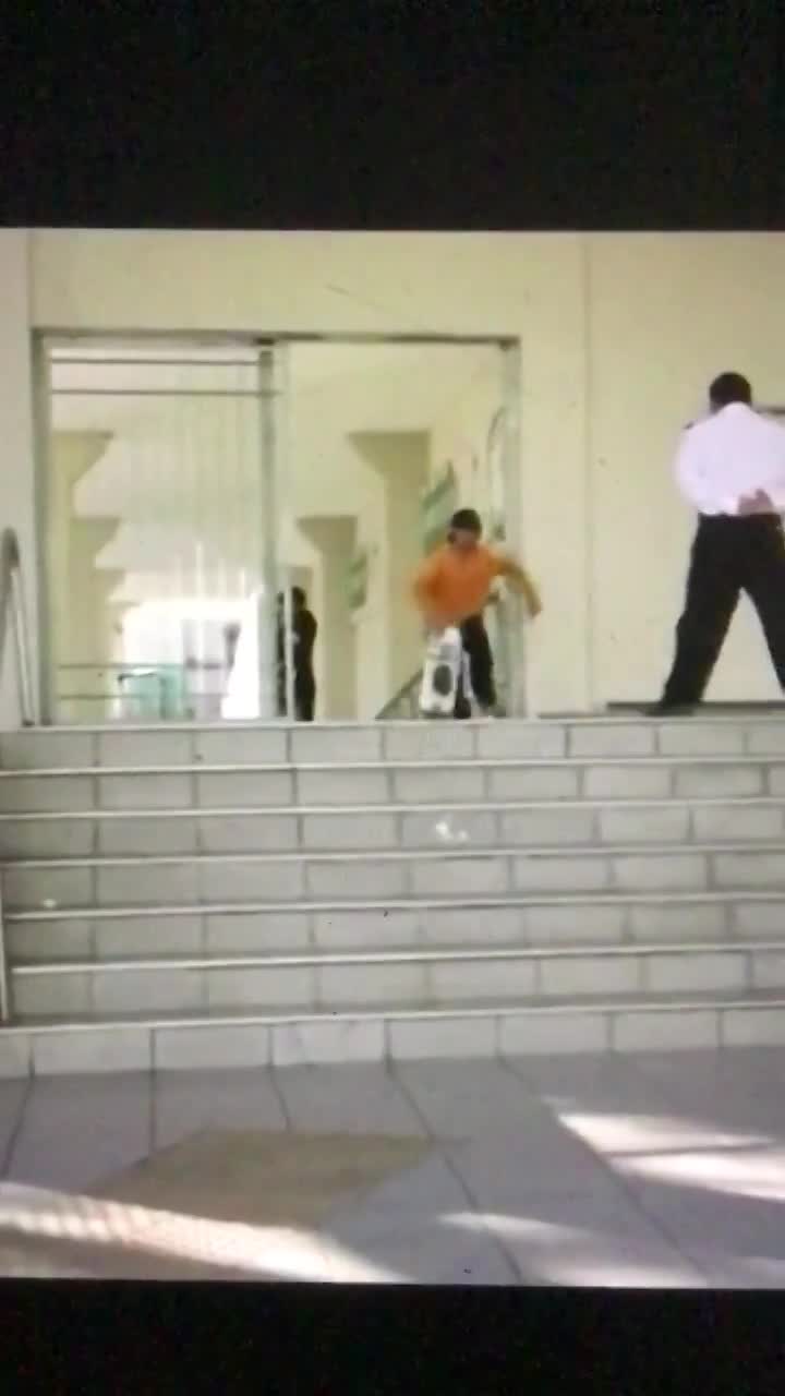 The boy said "one more," ignoring the security guard's request to leave the premises. The guard put his foot out and the boy fell.