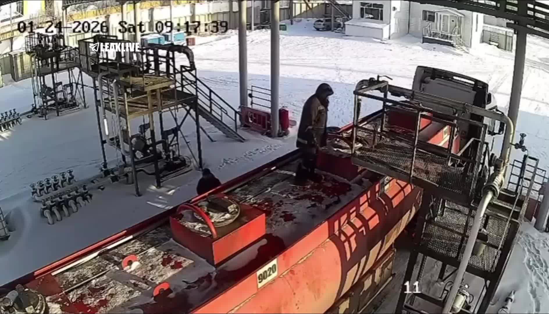 Pavlodar, Kazakhstan, January 24 — A fuel depot worker survived a powerful explosion of a gasoline tanker while it was being filled, sustaining about 20 % burns, fractured heels and other injuries.