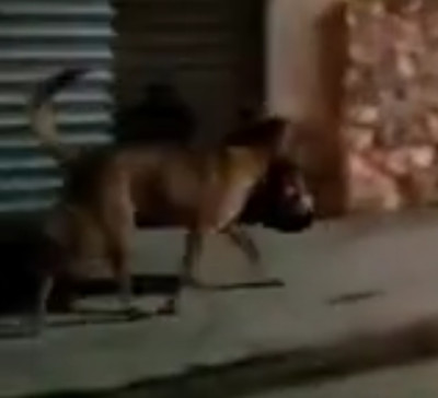 Dog carrying beaner head (poor dog).