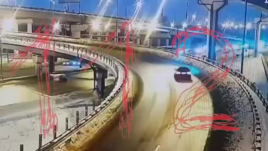 Russia, Moscow. Two people died when a car fell from an overpass.