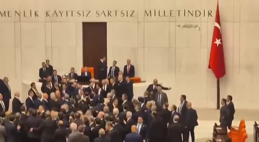 A massive fight breaks out in a Turkish parliament