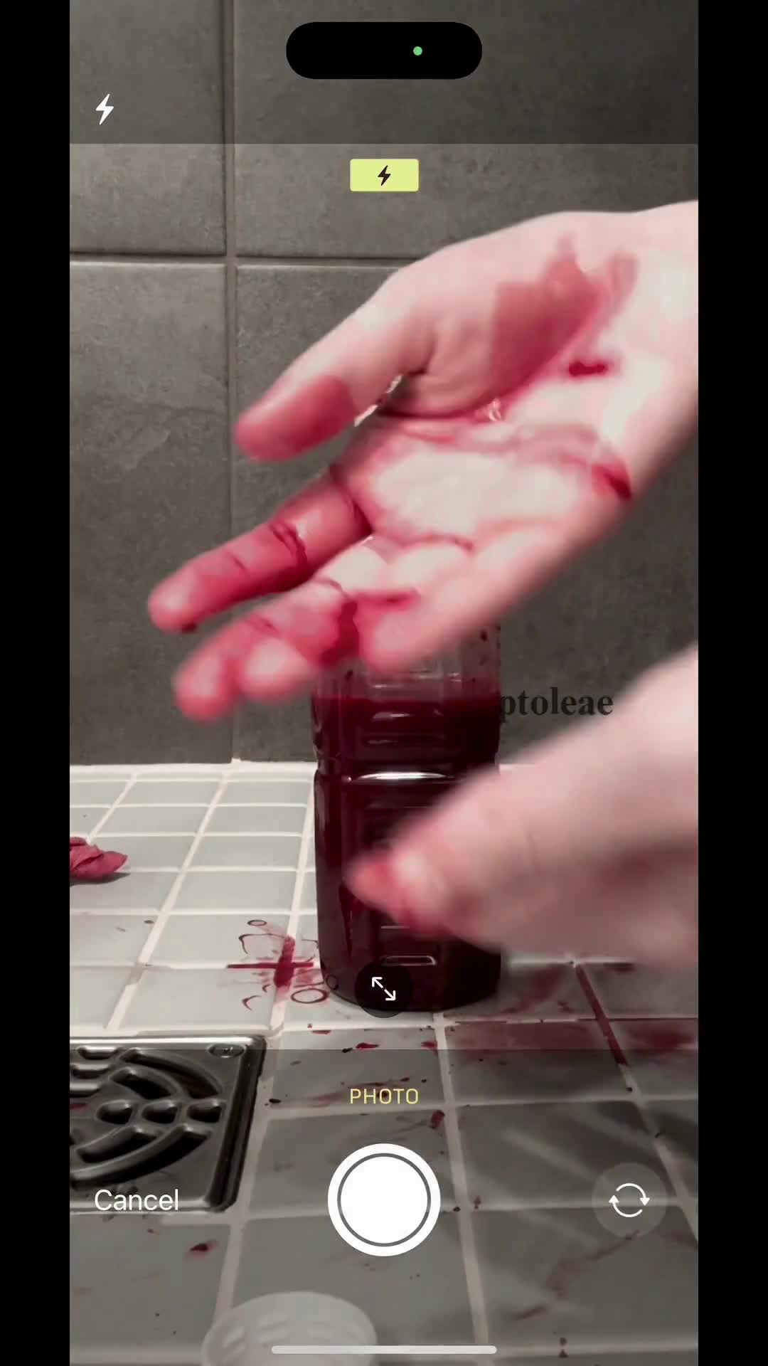 Guy plays with his bottled blood from self harm