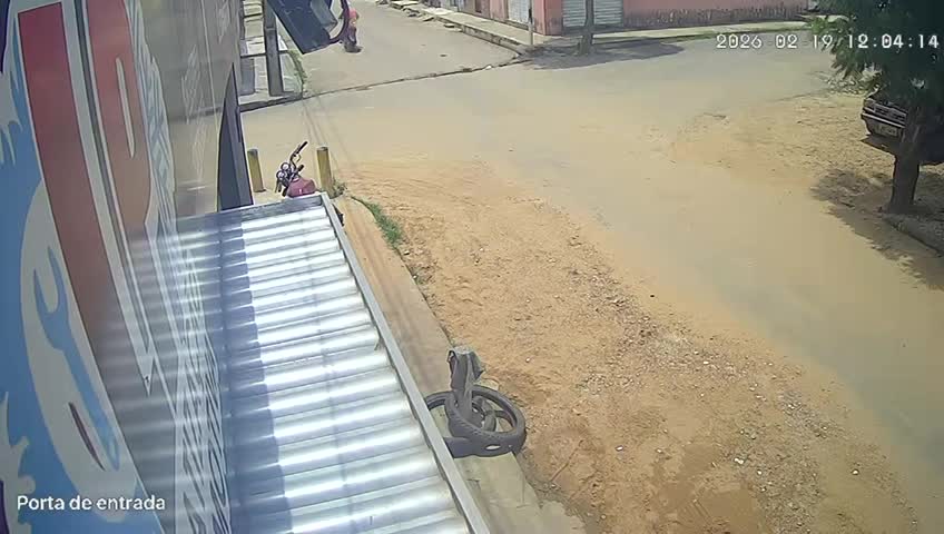 Motorcyclist gets run over by a truck after crashing into it on a intersection.