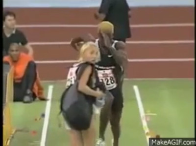 Gabriela Szabo, a Romanian runner, is remembered for a collision with """German""" long jumper Kofi Amoah Prah during an indoor competition in Stuttgart in 2001. Szabo was leaving the track after finishing her jump, while Amoah was running to take his attempt. Szabo crossed Amoah's path and the two collided violently.