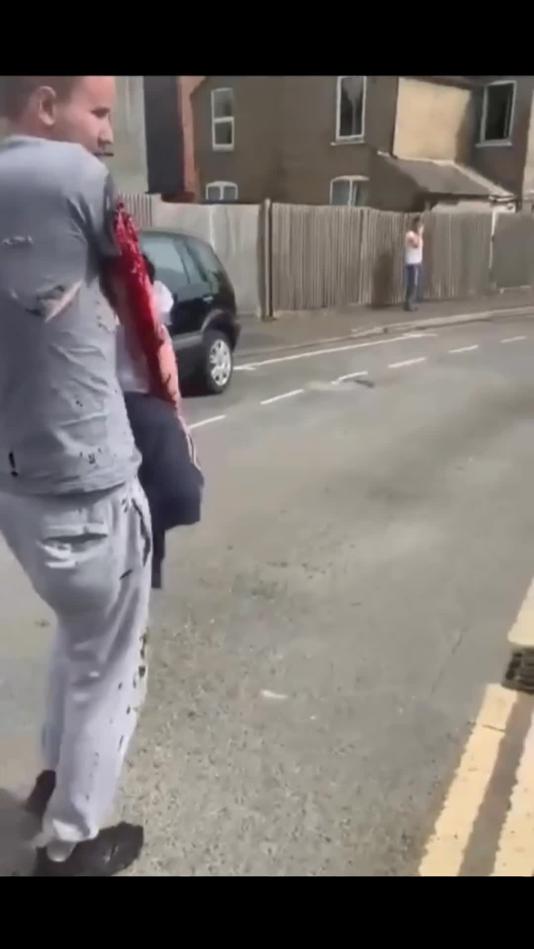 Guy walking off machete attack in UK